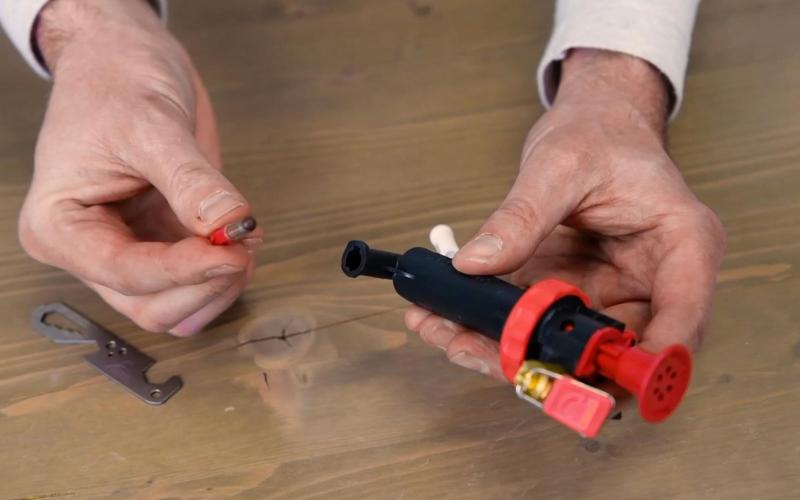 There is a check valve at the end of the pump mechanism. It must also be in good condition. Remove the check valve by turning the check valve a quarter turn to the left.