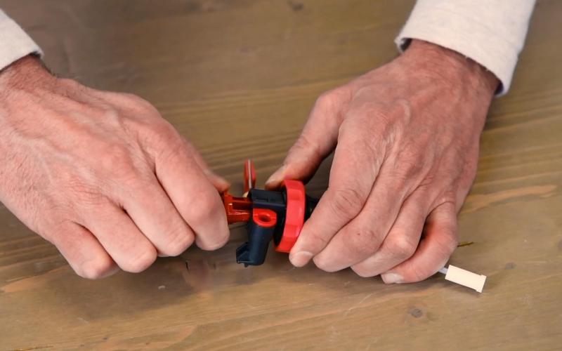 Use the MSR tool to loosen the red fuel line bushing a quarter turn counterclockwise. Check that there are no cracks or tears in the bushing. In that case, replace the bus with a new one.
